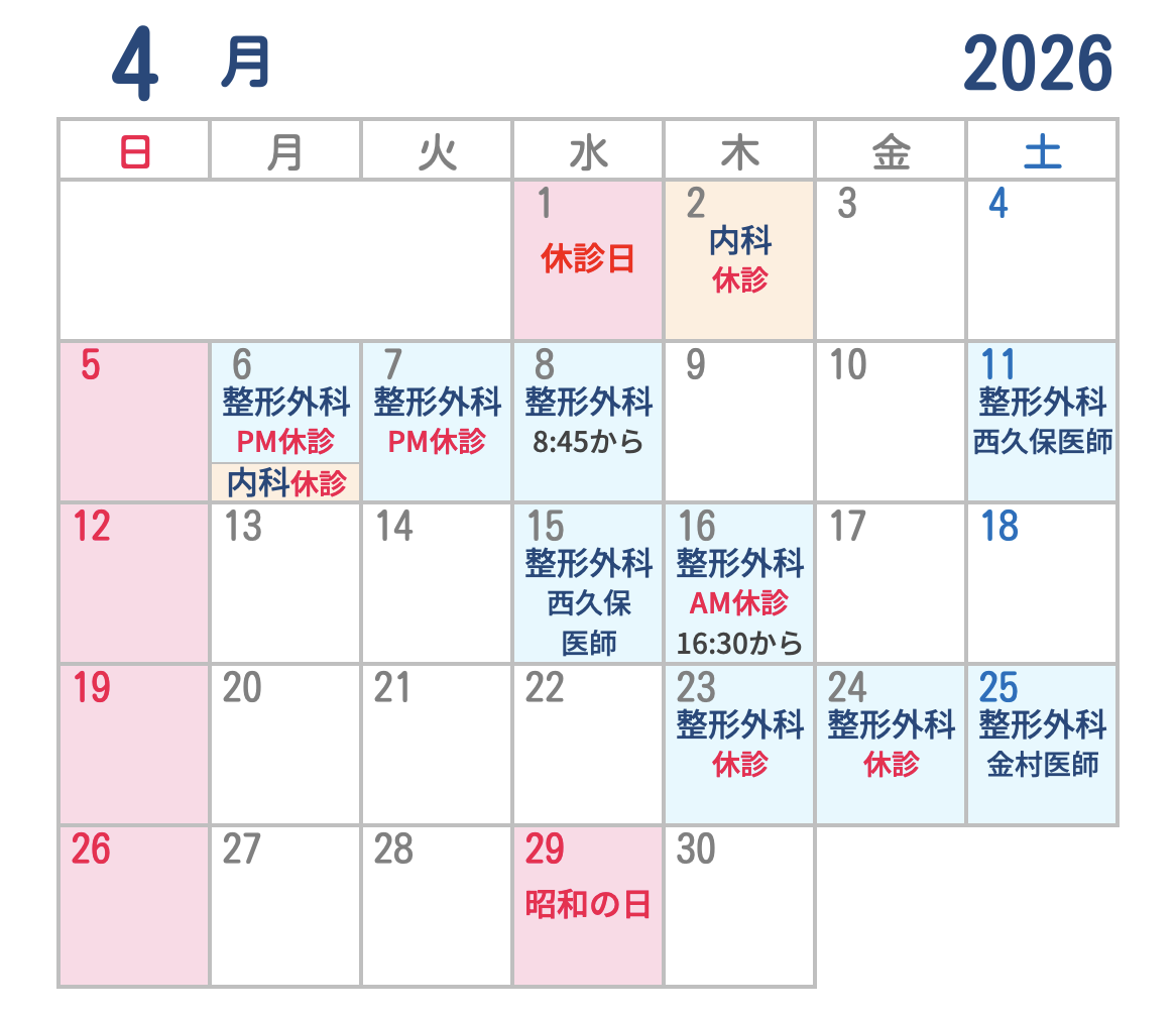 診療日程は予告なく変更となる場合がございます。